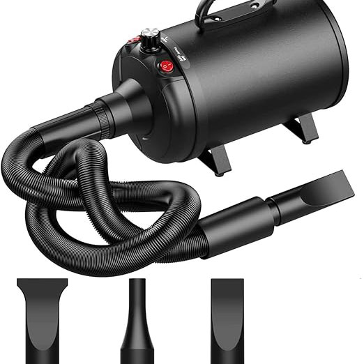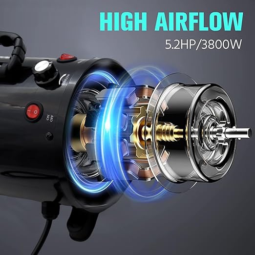 STRONG BLOW FORCE: This dog hair dryer delivers 5.2 HP / 3800 watts of power. The strong airflow dries even thick coats efficiently while helping remove loose fur, dirt, and dander. It leaves the coat smoother and shinier, achieving a professional grooming effect.