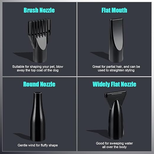 MULTIFUNCTIONAL USE: Comes with three interchangeable nozzles to meet different drying needs for pets of various coat types. This versatile dryer can also be used for drying cars, floors, and furniture.